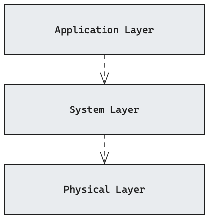 The implementation of the physical layer will usually depend on the hardware architecture and vendor. As such, the key architectural characteristic here is to either have the vendor implement our interface towards the system layer, or to implement an adapter that translates our interface to the vendor's interface.